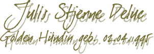 Deluc war schon als Welpe ein recht eigenwilliger Hund und vom Charakter her völlig anders als mein erster Golden, Farina. Die Ausbildung gestaltete sich schwieriger, das Fell war nicht so lang wie bei Farina im gleichen Alter und dann kam mit 5 Monaten noch die zuchtausschließende Gebißfehlstellung hinzu. Zu unser beider Leidwesen muß ich außerdem ihren Bewegungsdrang wegen einer Herzschwäche einschränken.