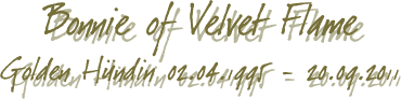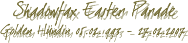 Nachdem sie in Würde alterte, verstarb meine liebste Hündin am 27. Februar 2007. Die Conquering Hearts Familie verlor damit die Begründerin des Golden Retriever Zwingers. Wir vermissen sie sehr und werden sie nie vergessen!